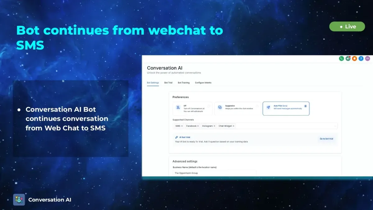 Webchat, Facebook & Google My Business Integration